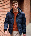 300D polyester outer. Houndstooth printed polyester lining. Recycled Warmloft insulation. Showerproof. Detachable adjustable hood. Ribbed inner collar. Full length front zip with studded storm flap. Padded inner 12" laptop/tablet pocket. Inner security pocket. Two front zip pockets. Ribbed cuffs. Drawcord hem. Zip access for decoration.