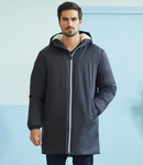 Polyester sherpa lined body with anti-pill treatment.Nylon taffeta lined sleeves.Polyester padding.Waterproof hood, shoulders and sleeves with taped seams.Breathable.Grown on adjustable hood with adjustable drawcord.Contrast full length two way zip with inner zip guard.Two front fleece lined zip pockets. Inner patch pocket with stud closure.Inner left chest zip pocket.Slighter longer back.Elasticated cuffs.Unbranded size label at neckline.Access for decoration.